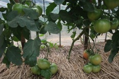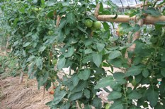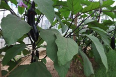 ハウスの中には子供ピーマンやシシトウがそして茄子が元気よく育っている。茄子の丸子漬けだけあればご飯が食べられる。 |